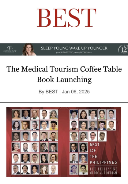 We extend our warm congratulations to one of the prime movers in the field of Orthodontics in the Philippines—Dr. Ma. Jocelyn Genevieve L. Tan, APO President-Elect—for being recognized in the Philippine Medical Tourism Coffee Table Book.